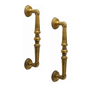 Ручка скоба торгової марки TRION. Представляє з себе елегантну дверну фурнітуру за доступну ціну. Ручки суцільнолиті із цинкового сплаву, завдяки чому вони міцні та стійкі до корозії. Таким чином їх зовнішній вигляд буде збережений від стирання понад 60 місяців. Фурнітура такого типу зручна у використанні та має тривалий термін експлуатації. Популярний кольоровий відтінок – кава - доречно поєднується з приміщенням в темних кавових відтінках. Вишуканий дизайн в класичному стилі гармонійно доповнить дверне полотно із різноманітними орнаментами та візерунками, а також довершить інтер’єр з елементами класики. Основним технічним критерієм при виборі є довжина ручки та відстань між кріпленнями. Важливо щоб при встановленні скоби, кріплення розмістились вище та нижче замка. Найчастіше ручки такого типу використовують з замком “бочкою”. Якщо ручка монтується лише одна то вона фіксується на шурупи, які прикриваються зовнішньою розетою. Якщо ж ручки ставляться дві - через дверне полотно робиться наскрізний отвір, куди вставляється спеціальна шпилька з різьбою. На неї накручується ручка і фіксується гужонами на нижній і верхній розеті.