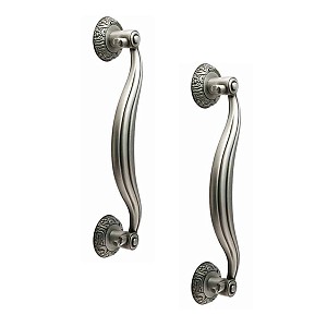 Ручка скоба торгової марки TRION. Представляє з себе елегантну дверну фурнітуру за доступну ціну. Ручки суцільнолиті із цинкового сплаву, завдяки чому вони міцні та стійкі до корозії. Таким чином їх зовнішній вигляд буде збережений від стирання понад 60 місяців. Фурнітура такого типу зручна у використанні та має тривалий термін експлуатації. Трендовий колір – античне срібло – добре підкреслить будинок або кімнату в світлих тонах. Вишуканий дизайн в класичному стилі гармонійно доповнить дверне полотно із різноманітними орнаментами та візерунками, а також довершить інтер’єр з елементами класики. Основним технічним критерієм при виборі є довжина ручки та відстань між кріпленнями. Важливо щоб при встановленні скоби, кріплення розмістились вище та нижче замка. Найчастіше ручки такого типу використовують з замком “бочкою”. Якщо ручка монтується лише одна то вона фіксується на шурупи, які прикриваються зовнішньою розетою. Якщо ж ручки ставляться дві - через дверне полотно робиться наскрізний отвір, куди вставляється спеціальна шпилька з різьбою. На неї накручується ручка і фіксується гужонами на нижній і верхній розеті. і прикриваються зовнішньою розетою. Якщо ж ручки ставляться дві - через дверне полотно робиться наскрізний отвір, куди вставляється спеціальна шпилька з різьбою. На неї накручується ручка і фіксується гужонами на нижній і верхній розеті.
