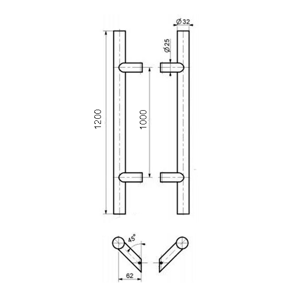 - Ручки скоби MEDOS SS 1200/1000.45 (комплект) нержавіюча сталь ⭐