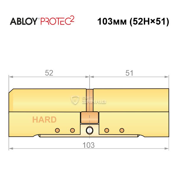 Купити циліндр ABLOY Protec2 103 (52H*51) (H - гартована сторона) латунь полірована в роздріб і гуртом можна на нашому сайті.