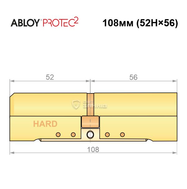 Купити циліндр ABLOY Protec2 108 (52H*56) (H - гартована сторона) латунь полірована в роздріб і гуртом можна на нашому сайті.