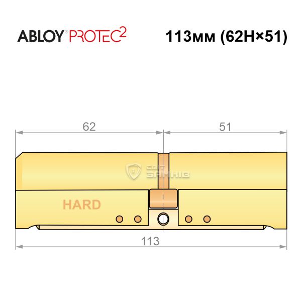 Купити циліндр ABLOY Protec2 113 (62H*51) (H - гартована сторона) латунь полірована в роздріб і гуртом можна на нашому сайті.