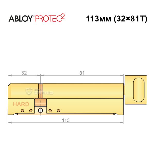Купити циліндр ABLOY Protec2 113T (32H*81T) (H - гартована сторона) латунь полірована в роздріб і гуртом можна на нашому сайті.