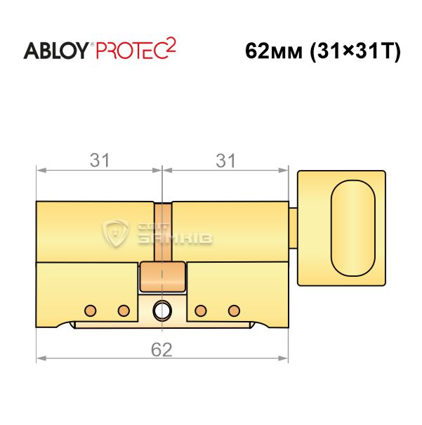 Купити циліндр ABLOY Protec2 62T (31*31T) латунь полірована в роздріб і гуртом можна на нашому сайті.