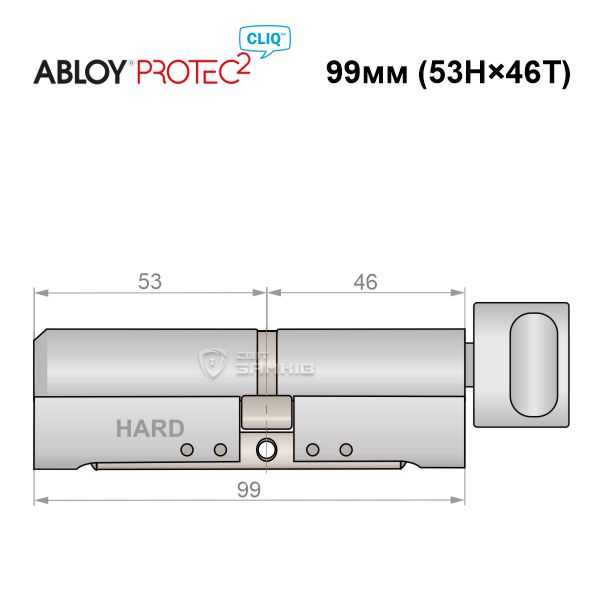 Купити циліндр ABLOY Protec2 CLIQ 99T (53H*46T) (H - гартована сторона) матовий хром в роздріб і гуртом можна на нашому сайті.