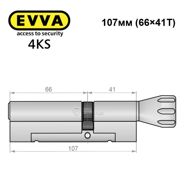 - Циліндр EVVA 4KS 107T (66*41T) нікель сатин 3 ключі ⭐