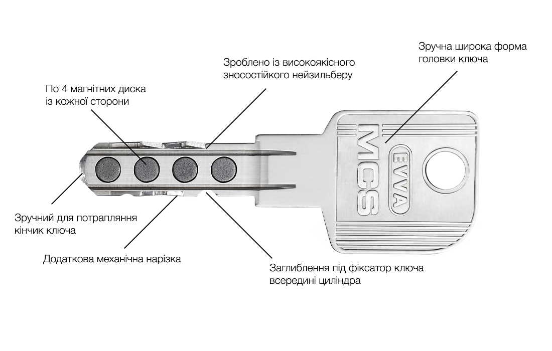 Магнітний ключ виключає ризики створення копії зловмисниками.