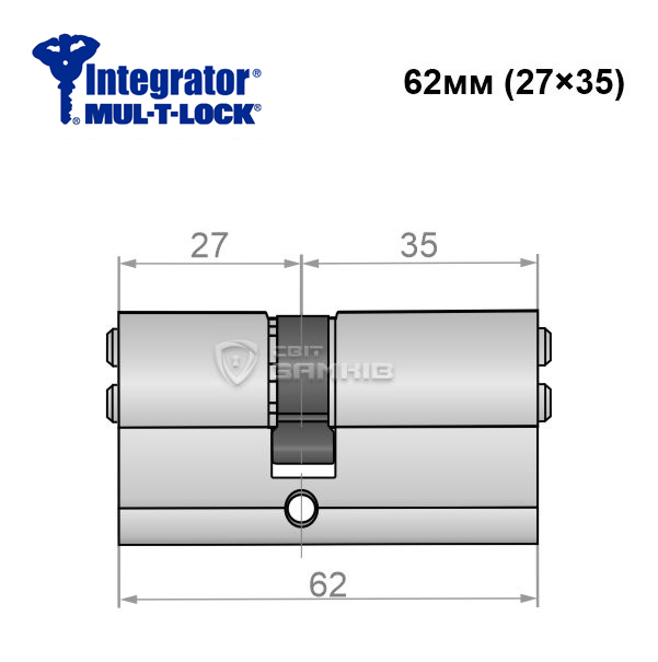 Циліндр MUL-T-LOCK Integrator 62 (27*35) нікель сатин