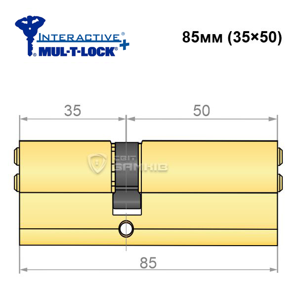 MUL-T-LOCK Interactive+ 85 (35*50) латунь в роздріб і гуртом можна на нашому сайті.