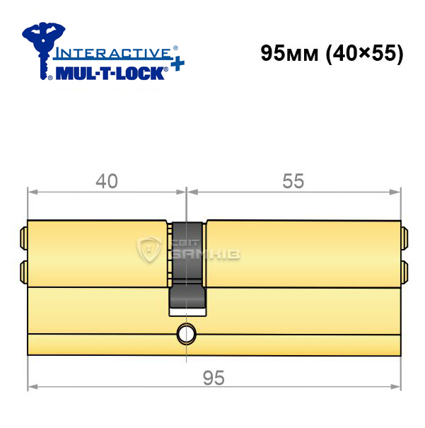MUL-T-LOCK Interactive+ 95 (40*55) латунь в роздріб і гуртом можна на нашому сайті.
