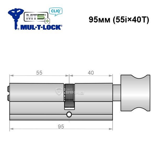 Купити циліндр циліндр MUL-T-LOCK MT5+ CLIQ 95T (55i*40T) нікель сатинв роздріб і гуртом можна на нашому сайті.