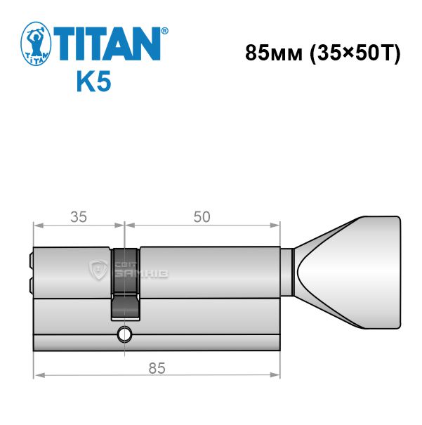 Циліндр TITAN K5 85T (35*50T) нікель сатин