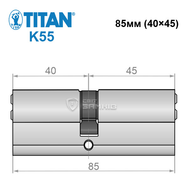 - Циліндр TITAN K55 85 (40*45) нікель сатин ⭐
