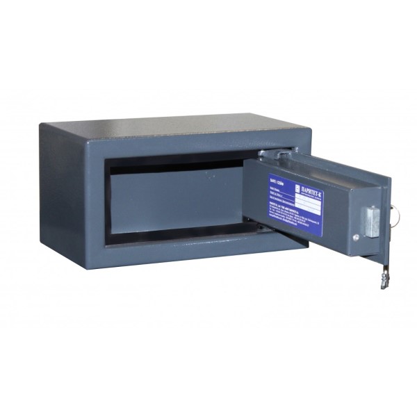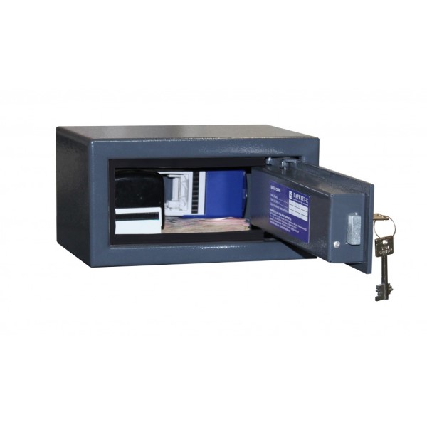 Корпус і двері сейфа виготовлені із металу завтовшки 2 і 4 мм відповідно. Закривається ключовим сейфовим замком Lowe&Fletcher. Замикання здійснюється одним прямокутним ригелем. В сірому кольорі відмінно доповнить будь-яке сучасне приміщення.