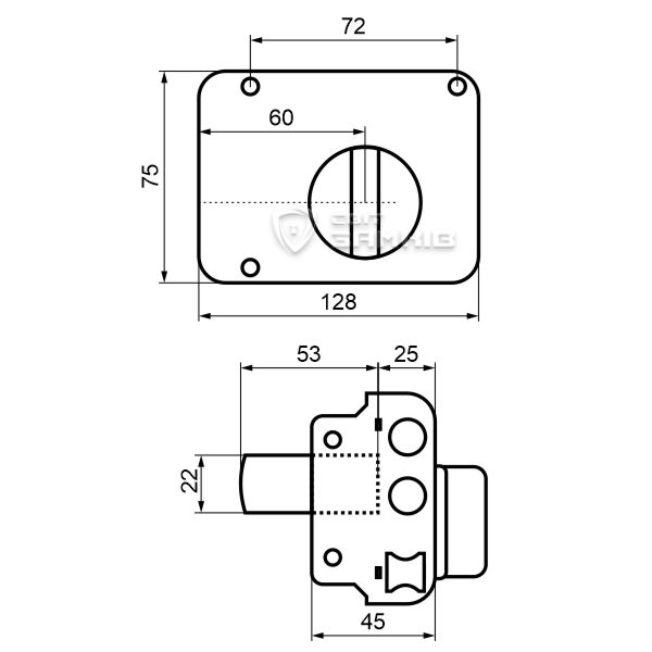 • Встановлюється на вхідні дерев’яні двері накладним монтажем.