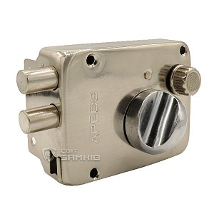 Китайський замок APECS 0096 C-S, встановлюється накладанням на дверне полотно. Як правило використовують для дверей у квартиру чи будинок. Встановлюється тільки на дерев’яні двері. Ззовні відкривається/закривається ключем, а із середини воротком. Замок універсальний, він підійде для дверей лівого та правого відкривання. Корпус має дверний ланцюг, який дозволяє не відкривати двері до кінця і залишити приміщення на провітрювання без можливості проникнення в нього сторонніх осіб. Цей замок має заскочку, яку можна перевести в неактивний стан спеціальним перемикачем. В такому стані Ви можете не хвилюватись, що двері самостійно захлопнуться.
