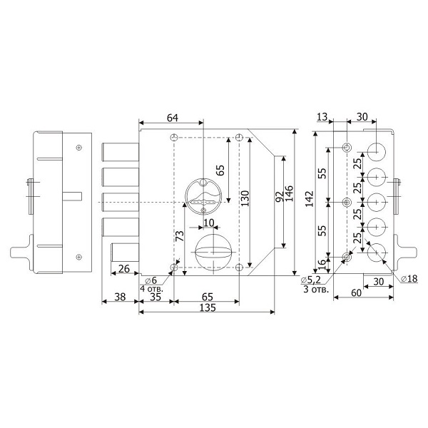 Опис Замок накладний ГАРДІАН 20.05 (BS64мм) вертикальна свердловина 5 ключів правий (н)