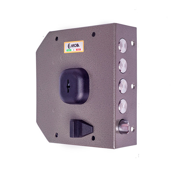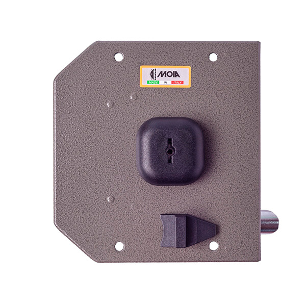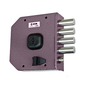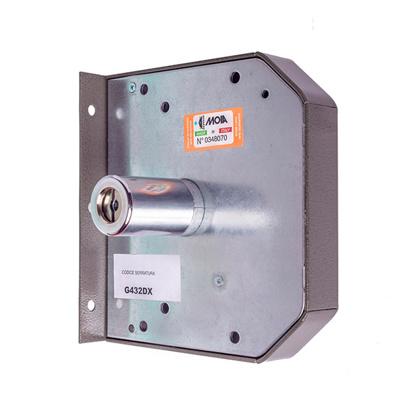 Італійський замок MOIA G432SX встановлюється накладанням на дверне полотно. Зазвичай використовується на вхідних дерев’яних та металевих дверях квартири чи будинку. Хоча такий замок можна зустріти в гаражах чи складських приміщеннях. Саме ця модель призначена для монтажу на двері ПРАВОГО відкривання. Корпус та елементи механізму замка виготовлені із оцинкованої сталі. Керується помповим ключем. При відкриванні та закриванні він «виштовхується» із серцевини. Такі ключі мають малі розміри, їх зручно носити в кишені чи жіночій сумочці. Повний вихід ригелів в 41 мм відбувається за 4 напівоберта ключа. Додатково зачинити двері зсередини дає можливість заскочка (язичок). Вона керується ключем або засувом. Замок комплектується зворотною планкою.