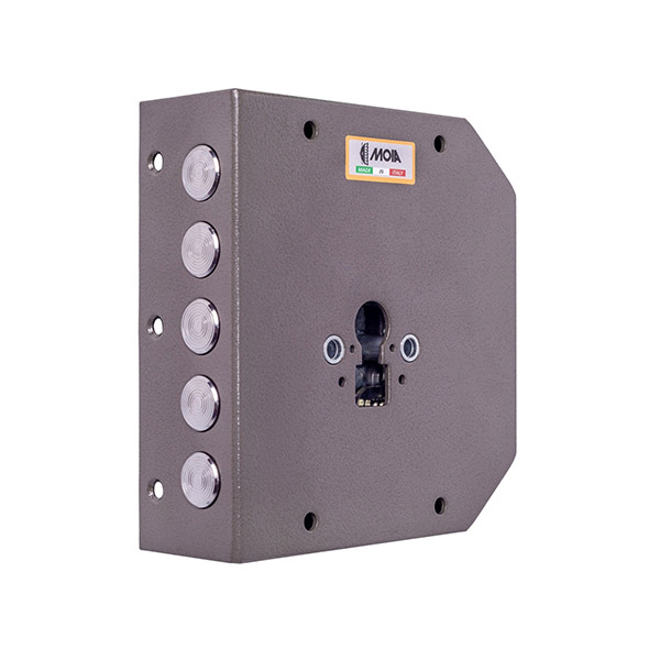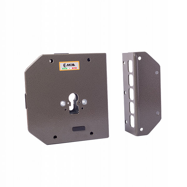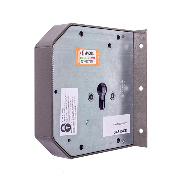 Італійський замок MOIA G451DXB встановлюється накладанням на дверне полотно. Зазвичай використовується на вхідних дерев’яних та металевих дверей квартири чи будинку. Хоча такий замок можна зустріти на дверях в гараж чи складські приміщення. Саме ця модель призначена для монтажу на двері ЛІВОГО відкривання. Корпус та елементи механізму замка виготовлені із оцинкованої сталі. Керується серцевиною. Вона в комплект не входить і докуповується окремо в залежності від ваших потреб. Основною особливістю цієї моделі є функція BLOCK. Її суть полягає в блокуванні механізму замка при спробі перелому або вибивання циліндра. Це значно посилює захисні властивості замка. Повний вихід ригелів в 30 мм відбувається за 4 напівоберта ключа. Комплектується зворотною планкою.