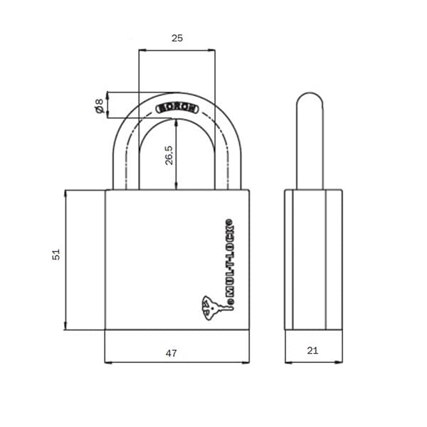 Ізраїльський замок MUL-T-LOCK G47 7x7 - це замок навісного типу, який ставлять зазвичай на шафки, ящики, гаражі, ворота і т.д. Замок має латунний корпус та вирізняється дужкою з гартованої сталі із вмістом бору. Підходить для вуличного використання. Закривається циліндром MUL-T-LOCK 7х7, профільний ключ з якого можна вийняти лише при закритому положенні. Цінують даний замок за простоту і надійність.