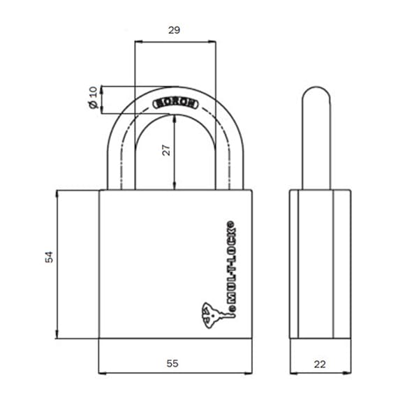Замок навісного типу виробництва Ізраїлю MUL-T-LOCK G55 ClassicPRO ідеально підійде для встановлення в гаражних, офісних чи різного роду господарських приміщеннях. Підходить для вуличного використання. Замок має латунний корпус та вирізняється дужкою з гартованої сталі із вмістом бору. Закривається циліндром MUL-T-LOCK ClassicPRO. Це дає можливість власнику розробити систему доступу “Майстер-ключ”, в якій ключі наділяються певними правами доступу, або систему “Один ключ”, коли декілька різних замків можна відкривати одним ключем. Відповідно замок використовує всі переваги даного циліндра, як високий рівень безпеки, надійність, захист від відмичок і т.д.