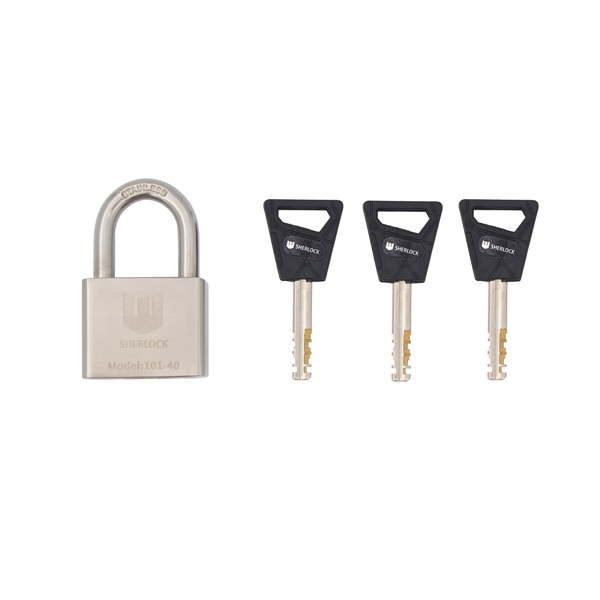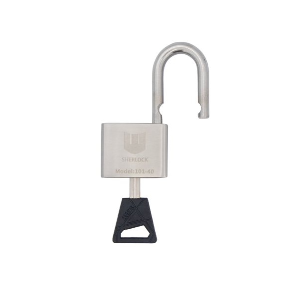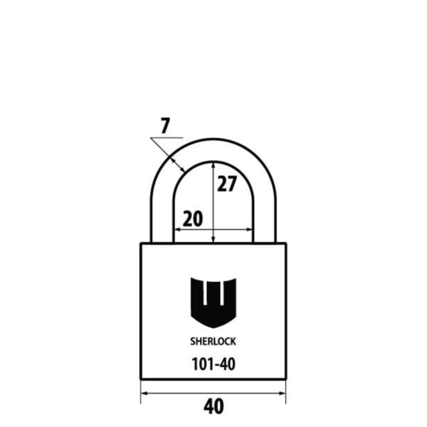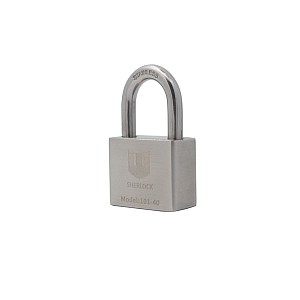 SHERLOCK 101-40 - навісний замок дугоподібного типу з високим рівнем захисту. Він має нерозбірну конструкцію – дужка не відділяється від корпуса. Вона міцно фіксується з двох сторін.