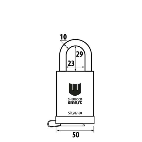 SHERLOCK SPL 207-50 Smart — ударостійкий навісний замок сучасного покоління. Корпус виготовлений з нержавіючої сталі, дужка — з гартованої сталі з хромовим покриттям. Ідеальний варіант для використання на відкритому повітрі, адже замок має захист від вологи.