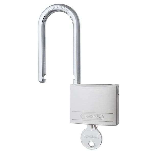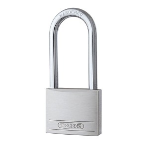 Навісний замок TOKOZ BETA 50 LONG. Можна використовувати в приміщенні та на вулиці. Матеріал виготовлення корпусу – латунь. Дужка виготовлена із гартованої сталі, що забезпечує захист від силового зламу. Керується серцевиною з англійським ключем. Якщо натиснути на дужку замок закриється автоматично, без використання ключа. В такому замку ключ можна вийняти і в закритому, і в відкритому стані. Замок має подовжену дужку, що дає змогу використовувати його на широко розставлених, або нерівних навісах.