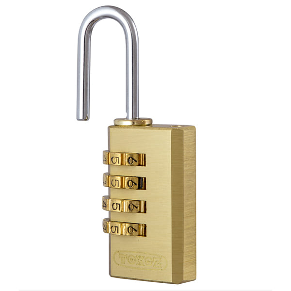 Кодовий чеський навісний замок TOKOZ DELTA 20/4. Використовується для запирання валізи, дорожньої сумки, рюкзака тощо. Корпус виготовлений із латуні, а дужка із гартованої сталі. Керується кодовим механізмом. Комбінацію складають чотири пронумеровані кодові диски. Щоб закрити замок, потрібно вставити дужку і повернути диски у будь-якому порядку. Код можна змінювати безліч разів, інструкція до перекодування йде в комплекті. Зручний та компактний у використані.