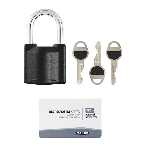 TOKOZ Omega 50 – це навісний замок, який виготовляється в Чехії. Підійде для замикання дверей, воріт, хвірток, складів, контейнерів та гаражів. Міцний корпус із цинкового лиття та гартована стальна дужка забезпечують надійний захист від силового зламу. При натисненні на дужку замок закриється автоматично без використання ключа. Дужка підпружинена, тому при відкриванні підстрибує. В розблокованому стані вона вільно обертається на 360°. Серцевина керується англійським ключем високої секретності. Такий замок може використовуватись при побудові системи «Майстер ключ» та «Один ключ».