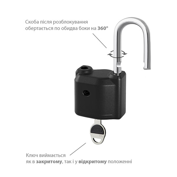 • Є можливість закрити замок без ключа шляхом натискання на дужку.