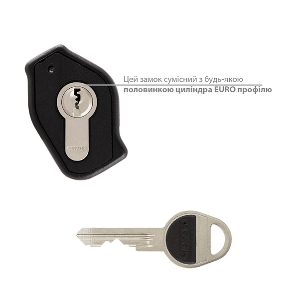 Фішкою TOKOZ Omega 50 є можливість максимально швидко замінити напівциліндр на інший. Замок підходить для використання при вуличних та екстремальних кліматичних умовах (пил, мороз, вода, жир).