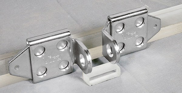 Навіси італійського виробництва VIRO 675. Призначені для кріплення на металеві і дерев’яні двері та ворота. Виготовлені із гартованої сталі, завдяки чому стійкі до корозії. Особливістю цієї моделі є те, що вона регулюється по відстані. Ззовні немає ніяких кріпильних елементів.