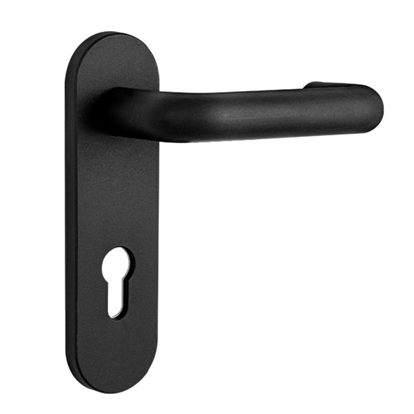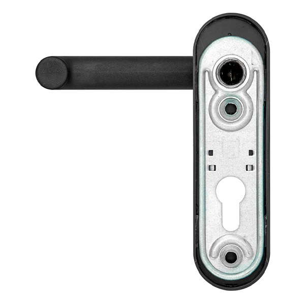 Ручка антипаніка на планці ISEO 032435 з округлим дизайном виконана в чорному кольорі. Ергономічна форма ручки додасть зручності в користуванні. Планка має отвір під серцевину стандарту EuroDIN. Міжосьова відстань складає 72 мм. Це основний критерій в процесі вибору такого типу дверних ручок. Призначена для встановлення на зовнішній частині протипожежних та вхідних стальних дверей із встановленою системою антипаніки TESA 1970. Внутрішня плата виготовлена із сталі, зовнішня пластина та ручка – із пластика. Планка ручки кріпиться до дверного полотна гвинтами М5. Вони в комплект не входять. Ручка сертифікована згідно стандартів DIN 18273 та EN 179.