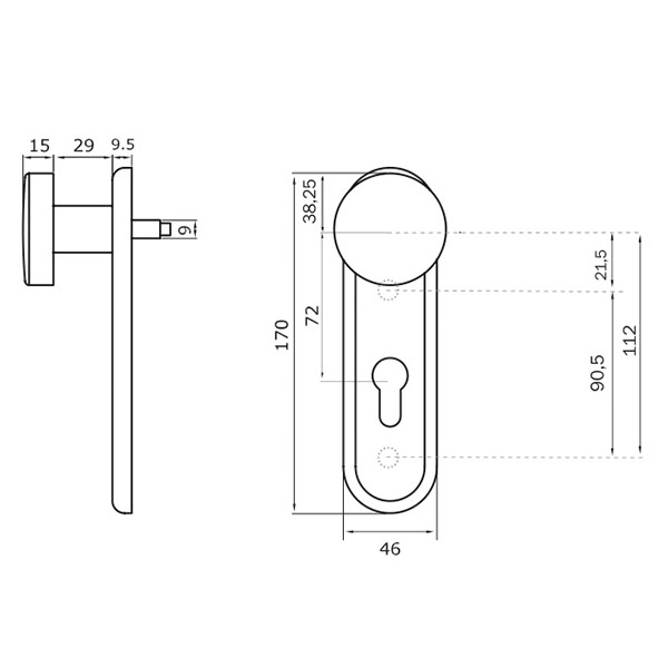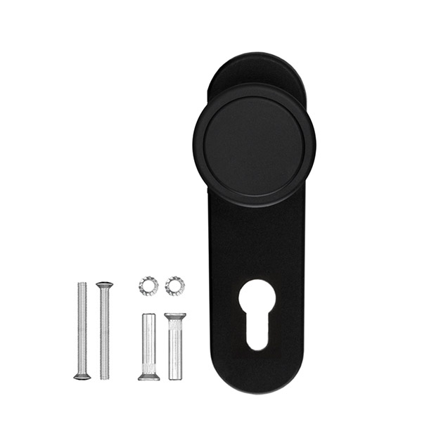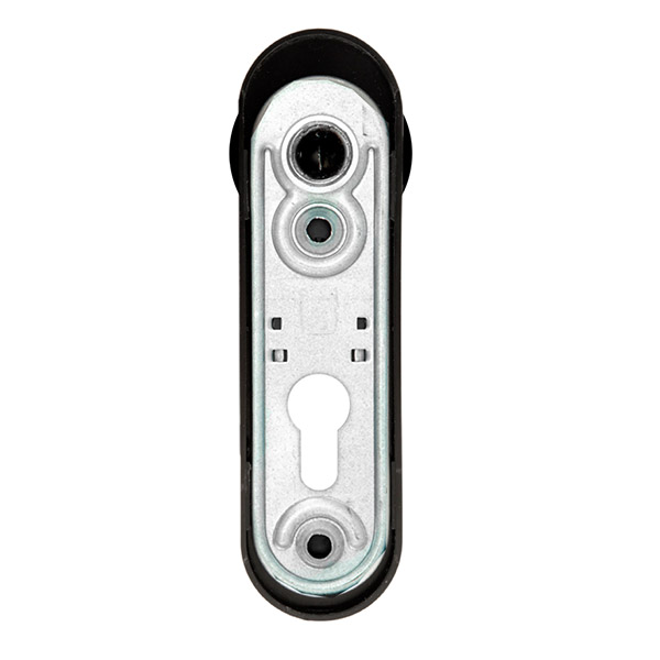 Ручка антипаніка на планці ISEO 032435 фіксована. Має круглу форму та виконана в чорному кольорі. Призначена для встановлення на зовнішній частині протипожежних та вхідних стальних дверей із встановленою системою антипаніки TESA 1970, TESA QUICK1E, TESA LITE1E. Планка має отвір під серцевину стандарту EuroDIN. Міжосьова відстань складає 72 мм. Це основний критерій в процесі вибору такого типу дверних ручок. Внутрішня плата виготовлена із сталі, зовнішня пластина та ручка – із пластика. Планка ручки кріпиться до дверного полотна гвинтами М5. Ручка сертифікована згідно стандартів DIN 18273 та EN 179.