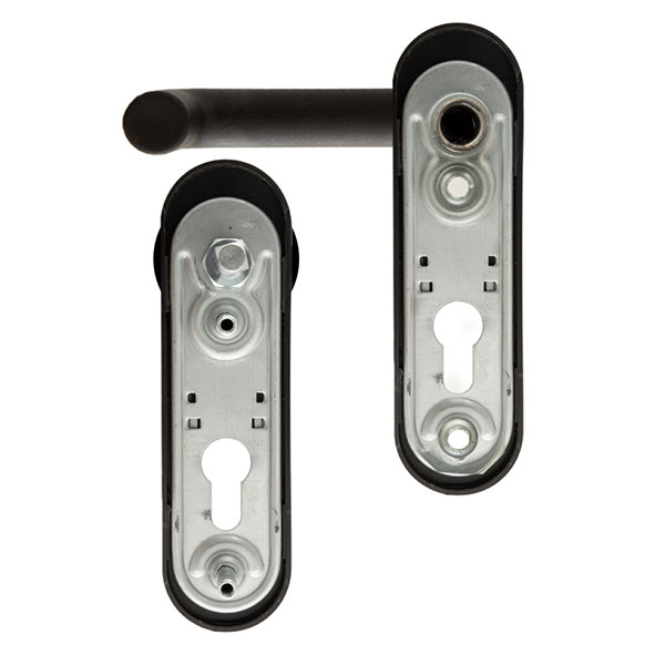 Ручки на планці ISEO 032405 виконані в ергономічному дизайні в чорному кольорі. Одна сторона нажимна, інша – фіксована. Зручна форма ручки додасть зручності в користуванні. Призначені для встановлення на протипожежні вхідні металеві двері завтовшки 40-63 мм. Матеріал виготовлення внутрішньої плати – сталь, зовнішніх пластин та ручок – нержавіюча сталь.