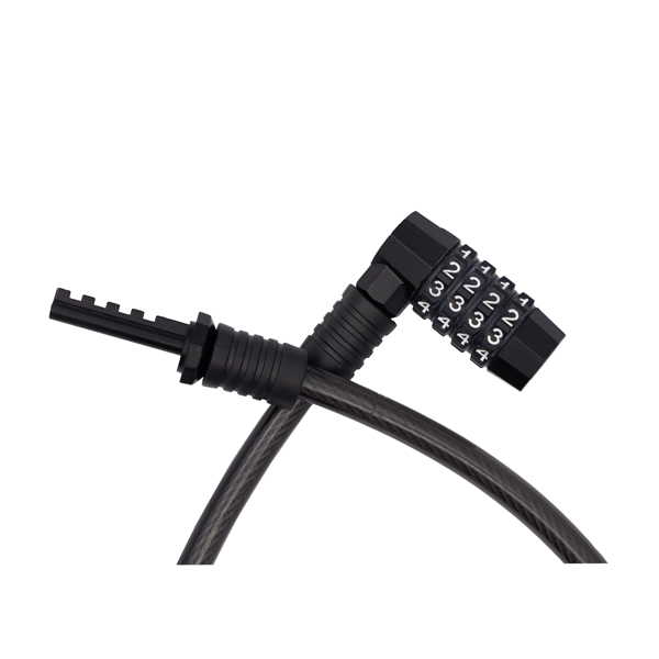 Секретна частина замка знаходиться у ПВХ корпусі. Вона оснащена 4-х значною кодовою комбінацією, яку можна налаштувати самостійно. В цьому є головна перевага – власнику не потрібно носити з собою ключ і переживати, що його хтось може вкрасти. Доволі компактні розміри дозволяють транспортувати замок на трубі під сідлом, на рулі чи у багажнику. Виробник рекомендує фіксувати велосипед через раму та заднє колесо до стовпа або бетонного поручня.