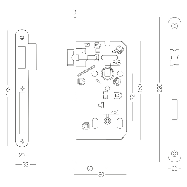 Механізм замка MVM M-72 WC встановлюють на міжкімнатні двері з додатковим замиканням зсередини за допомогою воротка. Має додаткові отвори для стяжних гвинтів ручок на розеті. Язичок із сталі є реверсивним, тому підходить як для правих так і для лівих дверей. Рекомендуємо до даної моделі підбирати ручки на планці з міжосьовою відстанню 72 мм.