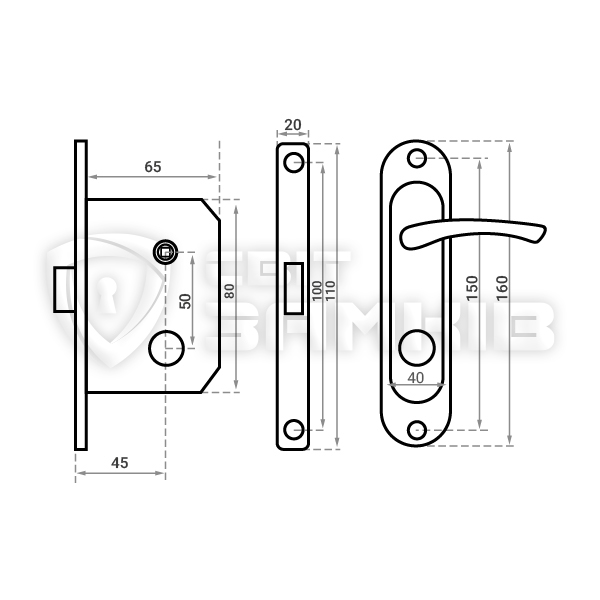 Комплектність замка механізм + ручки