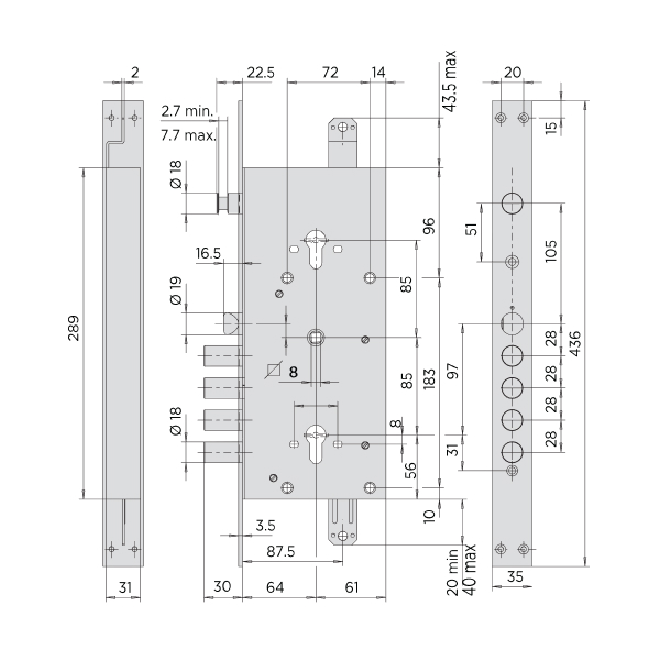 Опис Механізм замка CISA 56785 двосистемний Revolution Pro (BS67,5*85мм) взаємозалежний з блокуванням