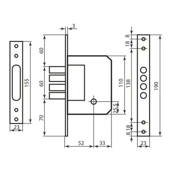 • Корпус замка взаємозамінний із замками KALE 189-4MF, SIBA 189-4MF, CLASS 189-4MF, BRUNO 189-4MF.