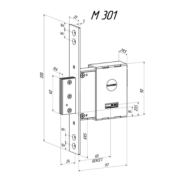Замок RADLOCK М 301 - це додатковий сувальдний замок врізного типу.