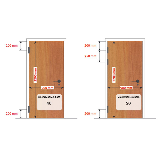 • Максимальна висота дверей – 2200 мм.