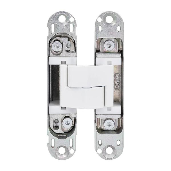 Італійська ТМ AGB на сьогодні являється європейським лідером з виробництва дверної фурнітури. Обумовлює це насамперед технологічна перевага та постійні інновації, які є основою якості продукції. Дана модель AGB Eclipse 3.0 - це завіс прихованого монтажу. На практиці це буквально означає, що він захований всередину дверного полотна та не виступає за його площину. З точки зору безпеки подібне виконання є найкращим, адже таку петлю не можна вибити або спилити. AGB Eclipse 3.0 виготовляється із цинкового сплаву ZAMAK та призначений для дерев’яних дверних полотен товщиною від 40 до 44 мм. Також завдяки товщині кріплення (4 мм) підходить і для алюмінієвих дверей. Забезпечує їхнє плавне відкривання на 180º (при відсутності лиштви). Це означає, що у повному відкритому стані двері не будуть займати житлового простору та заважати. Дана модель регулюється в 3-х вимірах: вертикаль +/- 2 мм, горизонталь +/- 1,5 мм, притиск +/- 1,0 мм. Таким чином, можна добитись максимальної точності та відсутності будь-яких щілин. Важливим аспектом при підборі завіс являються габарити дверей. Знаючи їх, Ви дуже просто визначитесь із кількістю необхідних петель з розрахунку того, що навантаження повинно бути не більше 40 кг на 2 петлі, або 60 кг - на 3. AGB Eclipse 3.0 виконаний в мінімалістичному стилі, тож стане незамінним аксесуаром для прихованих дверних полотен. Регулювальні гвинти не будуть видимими за спеціальними ковпачками навіть при відкритих дверях. Це все дає великий простір для цікавих дизайнерських втілень в сучасному хай-тек напрямку. В білому кольорі ці завіси будуть вдалим рішенням на дверях аналогічних відтінків для того, щоб максимально уникнути контрастів та не привертати зайвої уваги.