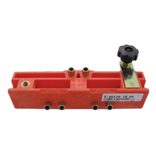 Універсальний шаблон (кондуктор) для встановлення вкручних 3D петель AGB діаметром 14/16 мм, для дверей з чвертю (напливом). Розрахований на врізку завісів з міжосьовою відстанню між штирями 25 мм.