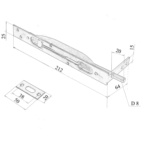 Описание Шпингалет большой KUROWSKI K2 большой оцинкованный
