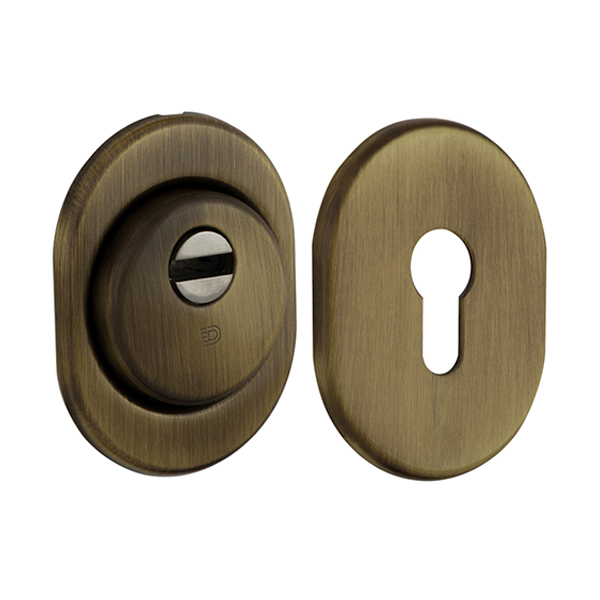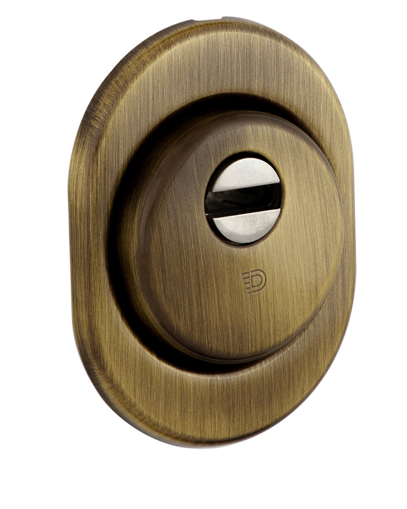 Монтируется врезным методом: по её диаметру делается отверстие в дверном полотне. Крепится сквозь вокруг сердцевины стяжными винтами М6 с технологией Flex. Ее суть заключается в более мелкой резьбе и определенной насечке. Благодаря этому и специальному виду жесткой стали винты выдерживают нагрузку в 5 раз больше, чем обычные. Так они создают монолитную конструкцию с сердцевиной. Таким образом, протектор защищает ее вместе с точкой крепления в дверях от физических и силовых методов взлома - сверления, взлома и выбивания. Для дополнительной защиты от сверления в отверстия крепления устанавливаются закаленные шарики. Доступа к винтам крепления нет и сорвать саму броненакладку чрезвычайно сложно. Высота (или толщина) протектора составляет 25 мм, диаметр - 50 мм. В бронзовом цвете лучше будет дополнять двери с пыльно-землистой палитры.