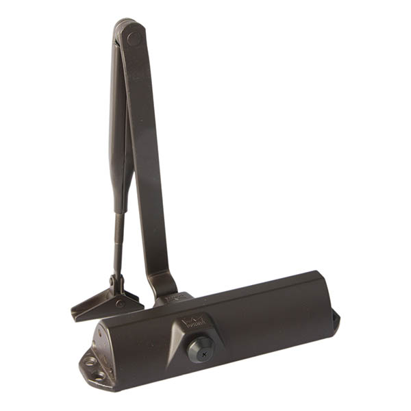 Немецкая ТМ DORMA является одним из ведущих производителей систем для автоматических дверей и фурнитуры для них. Данная модель доводчика DORMA TS68 EN2/3/4 устанавливается накладным монтажом преимущественно на внутренние дверные полотна с максимальным весом до 80 кг и шириной от 750 до 1100 мм. Непосредственно на корпусе есть возможность регулировать основную скорость в диапазоне 180°-15° и скорость захлопывания - 15°-0°. В целом благодаря таким возможностям регулирования можно добиться максимально индивидуальной настройки закрытия дверей. Гидравлическое масло в данной модели высокого качества. Благодаря этому проблем при работе доводчика при перепаде температур не будет. Вообще его рабочая температура варьируется в диапазоне от -15°С до + 40°С. В данной комплектации присутствует стандартная тяга без фиксации дверного полотна в открытом положении. В коричневом цвете лучше будет дополнять двери аналогичных темных оттенков для того, чтобы максимально избежать контрастов и не привлекать лишнего внимания.