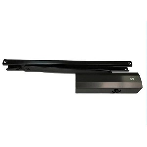 Немецкий производитель G-U уже более века специализируется на выпуске дверной и оконной фурнитуры. Данная модель доводчика GU ОТS 634 SLD HO устанавливается накладным монтажом на внутренние и внешние дверные полотна с максимальным весом до 100 кг и шириной до 1100 мм. Непосредственно на корпусе есть возможность регулировать основную скорость, скорость захлопывания и тормоз открывания. Данная функция защищает дверное полотно от удара о стену и вырывания тяги доводчика. В целом благодаря таким возможностям регулирования можно добиться максимально индивидуальной настройки закрытия дверей так, как Вам нужно. Гидравлическое масло в данной модели высокого качества. Благодаря этому проблем при работе доводчика при перепаде температур не будет. Вообще его рабочая температура варьируется в диапазоне от -15°С до + 40°С. В данной комплектации присутствует скользящая тяга с фиксацией дверного полотна в открытом положении в пределах 80°-130°. Это дает возможность оставить двери открытыми для проветривания или для удобства пользования в коммерческих помещениях. В черном цвете лучше будет дополнять двери аналогичных темных оттенков для того, чтобы максимально избежать контрастов и не привлекать лишнего внимания.