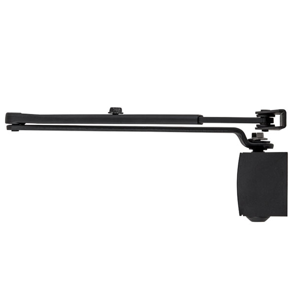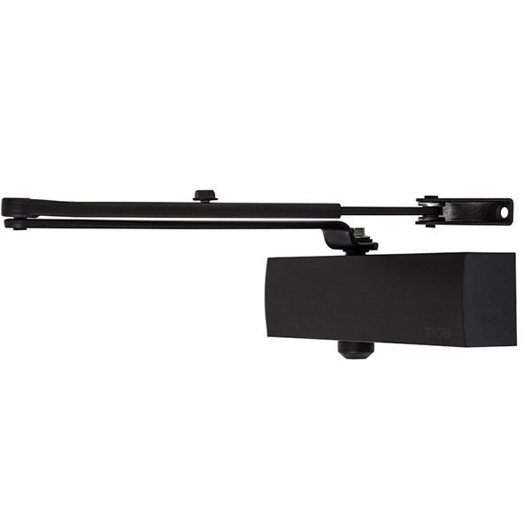 Продукция японского производителя RYOBI по праву признана во всем мире благодаря своему отличному качеству. Данная модель RYOBI D-1200 STD устанавливается накладным монтажом на легкие дверные полотна массой до 80 кг и шириной до 1100 мм. Гидравлический привод обеспечивает четкую работу доводчика с углом открывания до 180°. Непосредственно на корпусе есть возможность регулировать основную скорость и скорость захлопывания. Благодаря этому можно достичь индивидуальной настройки закрытия дверей так как Вам нужно. Особенностью доводчиков RYOBI является специальное термоконстантное масло. Оно обеспечивает стабильную работу даже при большом перепаде температур. Вообще рабочая температура варьируется в диапазоне от -20 до + 45°С. RYOBI D-1200 STD может быть установлен на лево и правосторонние двери с возможностью открывания как внутрь так и наружу. В данной комплектации присутствует стандартная тяга без фиксации двери в открытом состоянии. При необходимости возможно отдельно заказать тягу с фиксацией. В черном цвете лучше будет дополнять двери подобных темных оттенков для того, чтобы максимально избежать контрастов и не привлекать лишнего внимания.